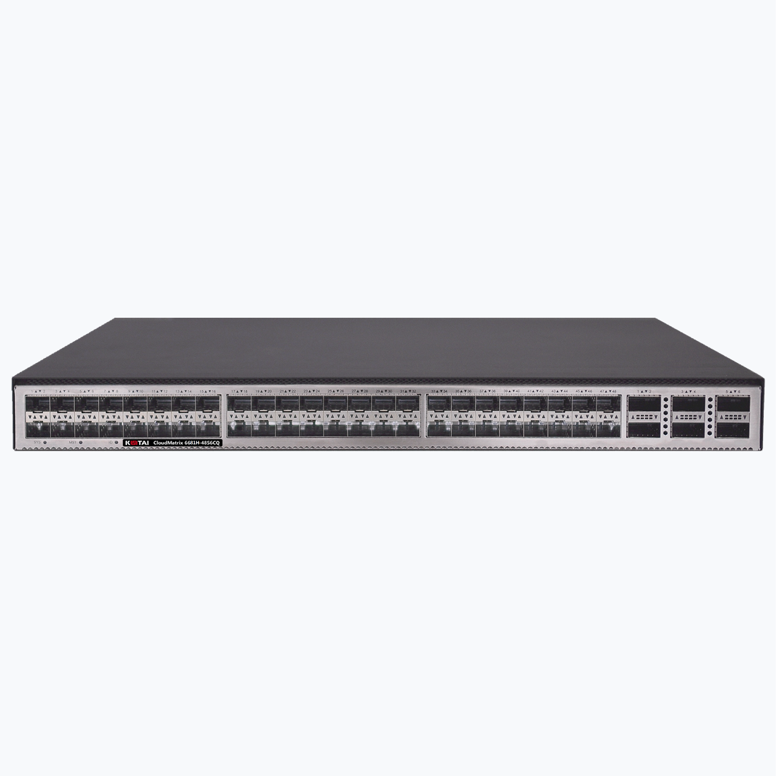 CloudMatrix 6681H-48S6CQ 交换机提供48个10GE SFP+接口,6个100GE QSFP28接口,或6个40GE QSFP+接口。
